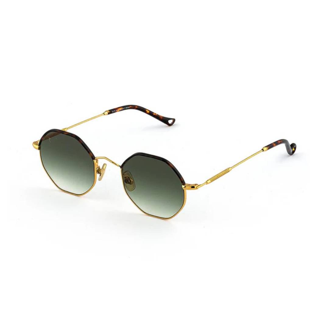 - Monture de couleur dorée-écaille brune munie de verres Gris-Vert dégradé